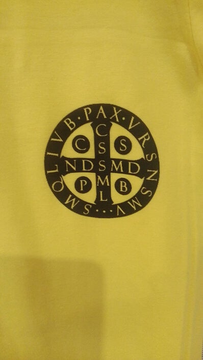 Tshirt b&c E190, 100% coton avec impression texte de la croix de saint Bejnoît sur la poitrine